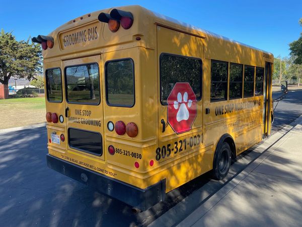 Our mobile grooming buses are small enough to fit on just about every street in San Luis Obispo and have self-contained waste water tanks to keep the front of your house or office clean.